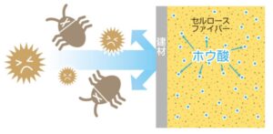 EMセルロースファイバーに添加されているホウ酸の効果についてご紹介いたします!